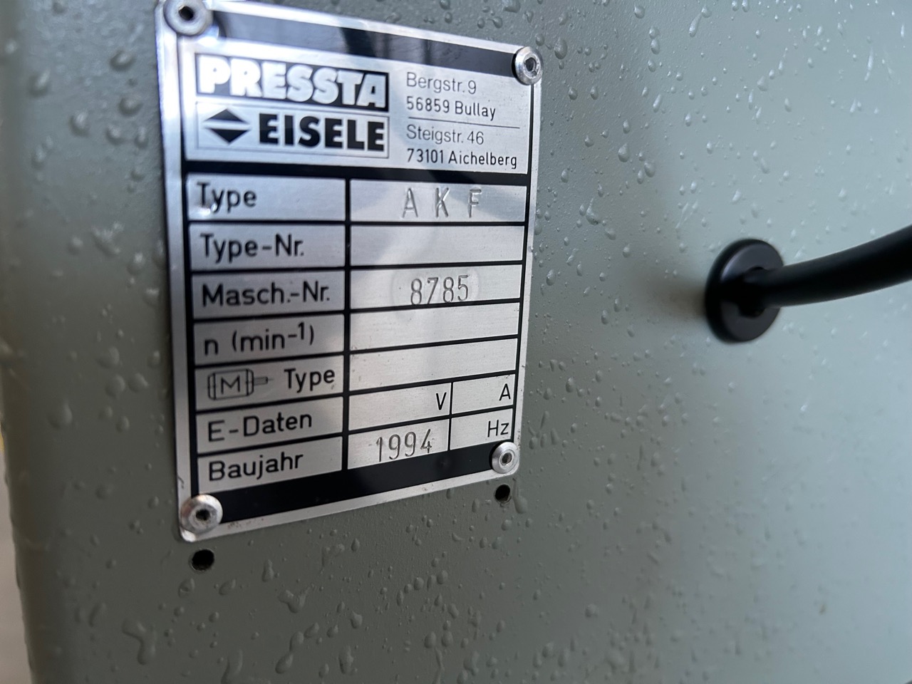 • Typ: AKF 250L Silnik: 400 V, 2,2 kW Prędkość obrotowa: 2800 obr./min Średnica frezu: 250 mm Średnica wału mocowania frezu: 40 mm Szerokość frezowania: 300 mm Głębokość frezowania: 85 mm Wysokość profilu: 160 mm Masa: ok. 150 kg Wymiary (szer. × wys. × gł.): 950 × 1450 × 930 mm