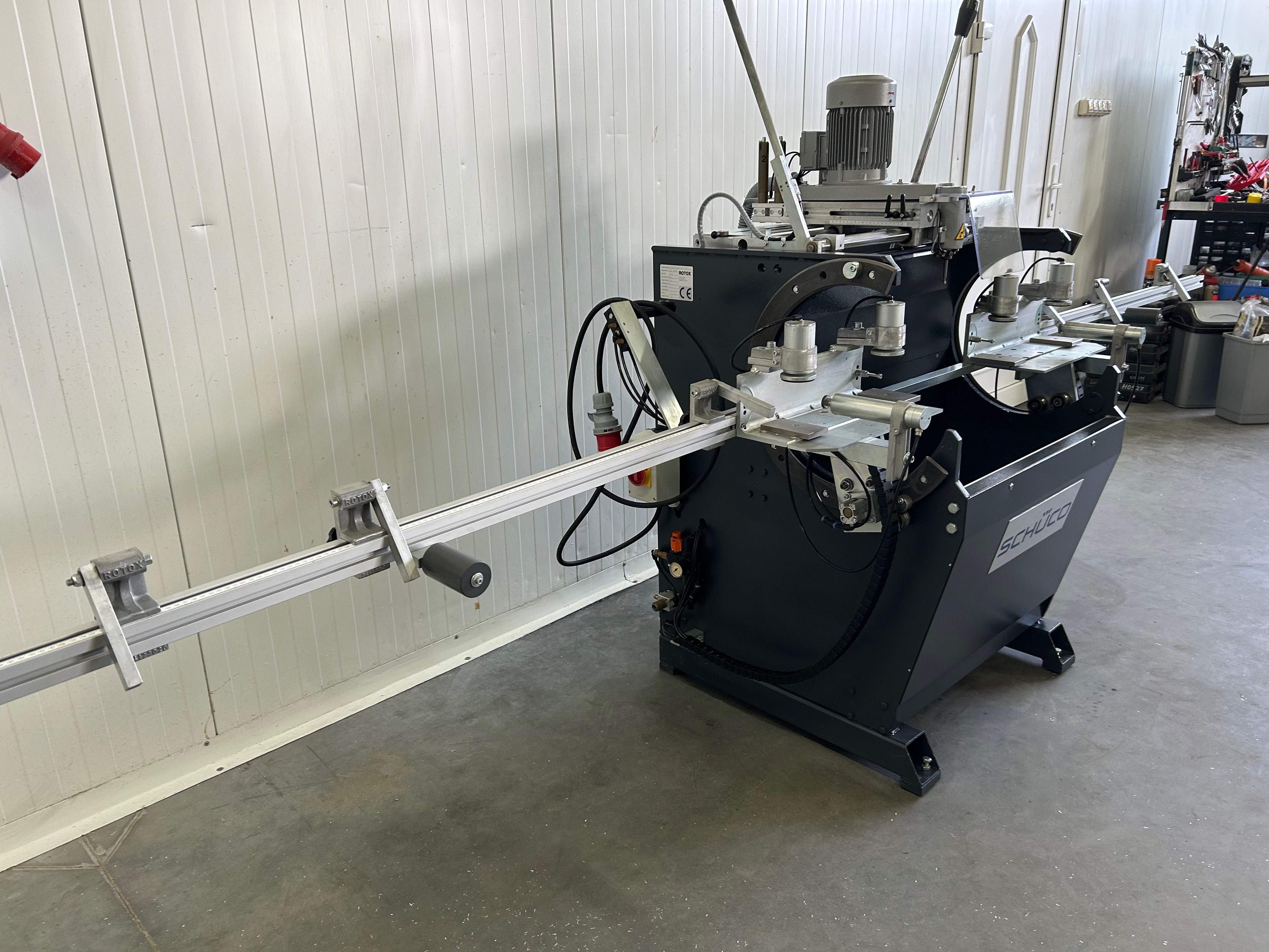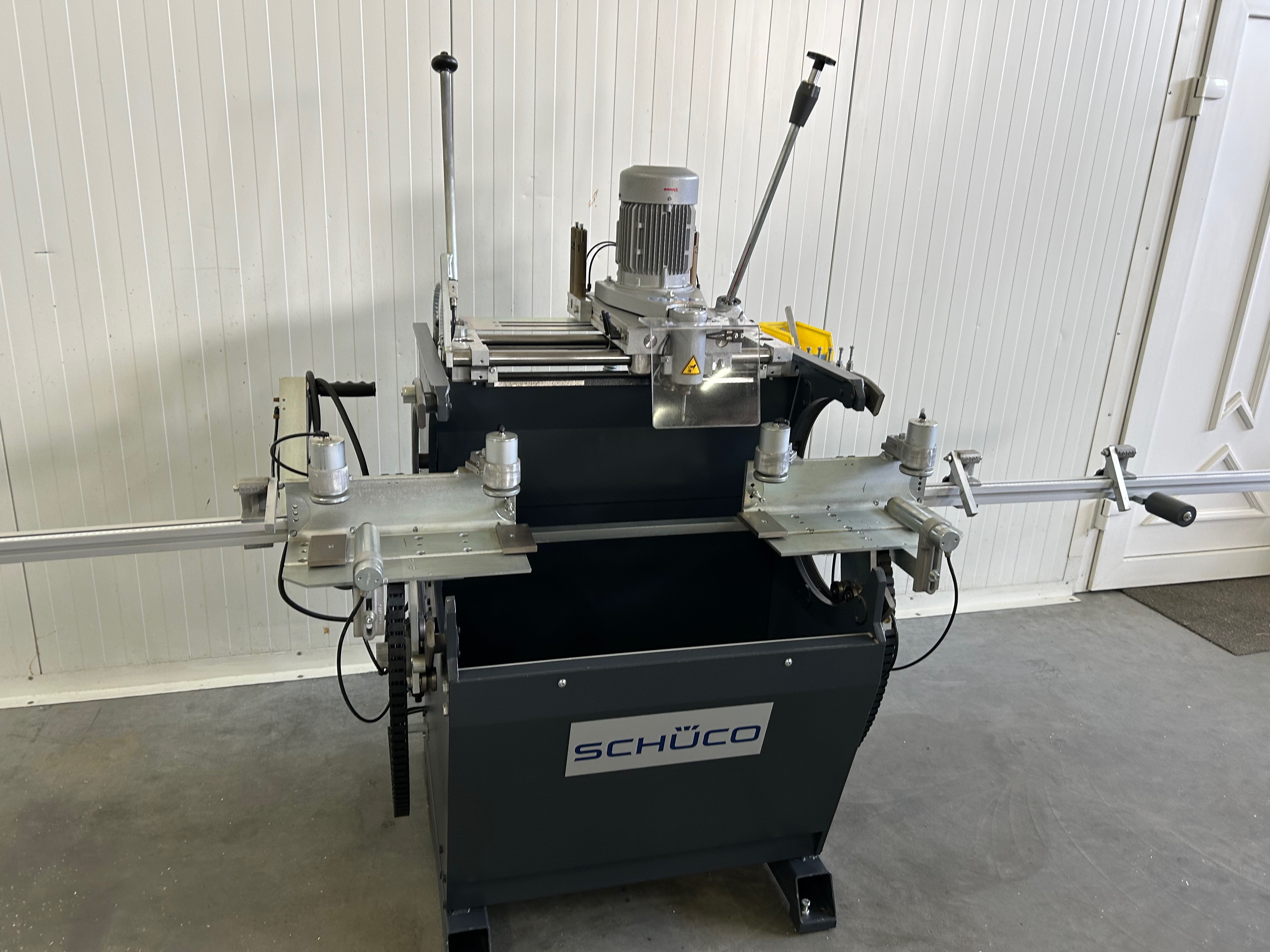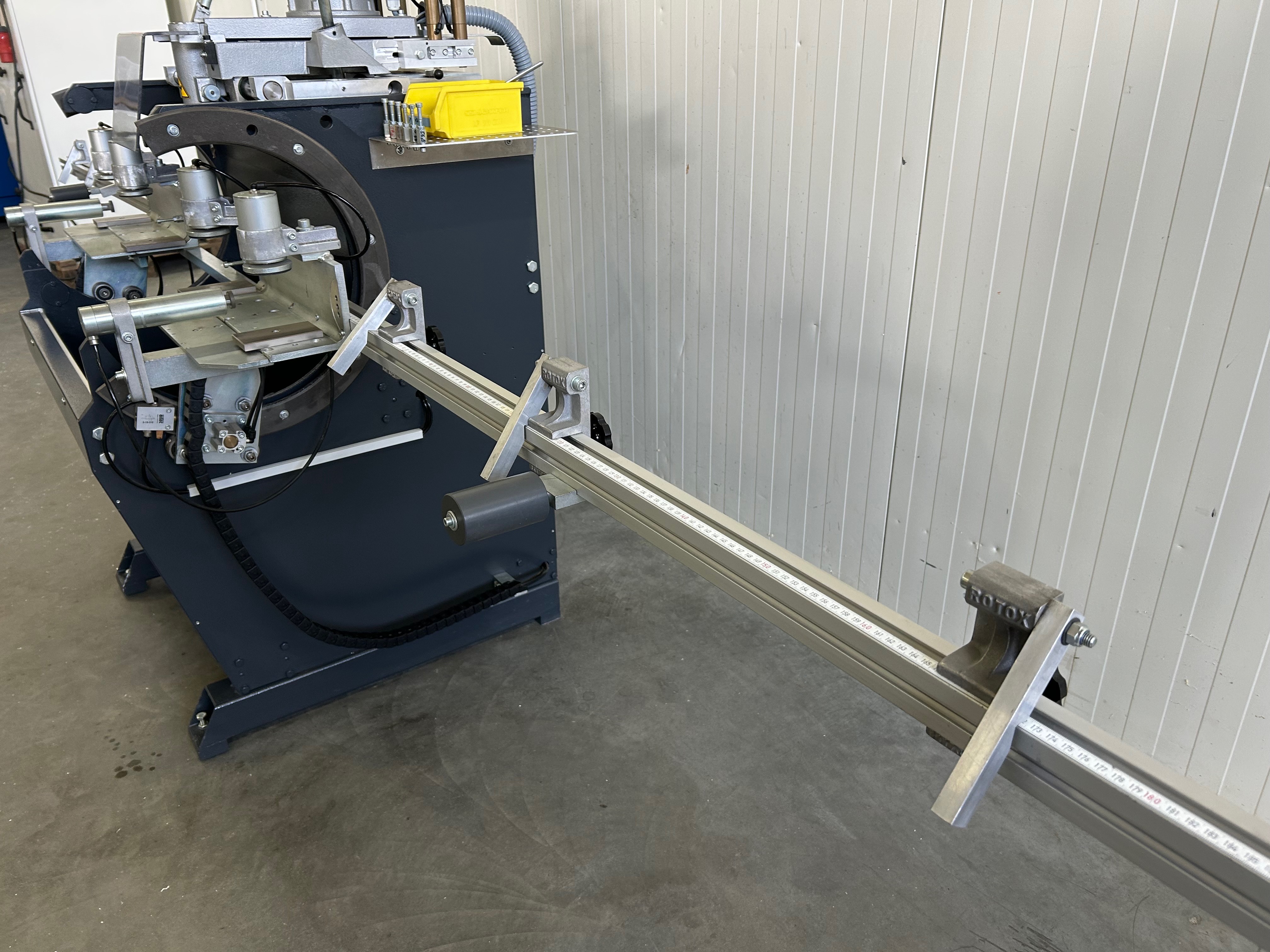 - Obrotowy stół roboczy między 0° a 180°, co umożliwia obróbkę z 3 stron w jednej mocowaniu 2 prędkości obrotowe, 6.000 lub 12.000 obrotów na minutę do wyboru, dzięki czemu można obrabiać zarówno profile stalowe, jak i aluminiowe 4 pneumatycznie sterowane wkładki kopiujące Pneumatyczne mocowanie materiału Urządzenie do natrysku minimalnej ilości Szerokość profilu: 30-120 mm Wysokość profilu: 50-100 mm Długość pręta: 490 - 3.000 mm Waga: ok. 350 kg
