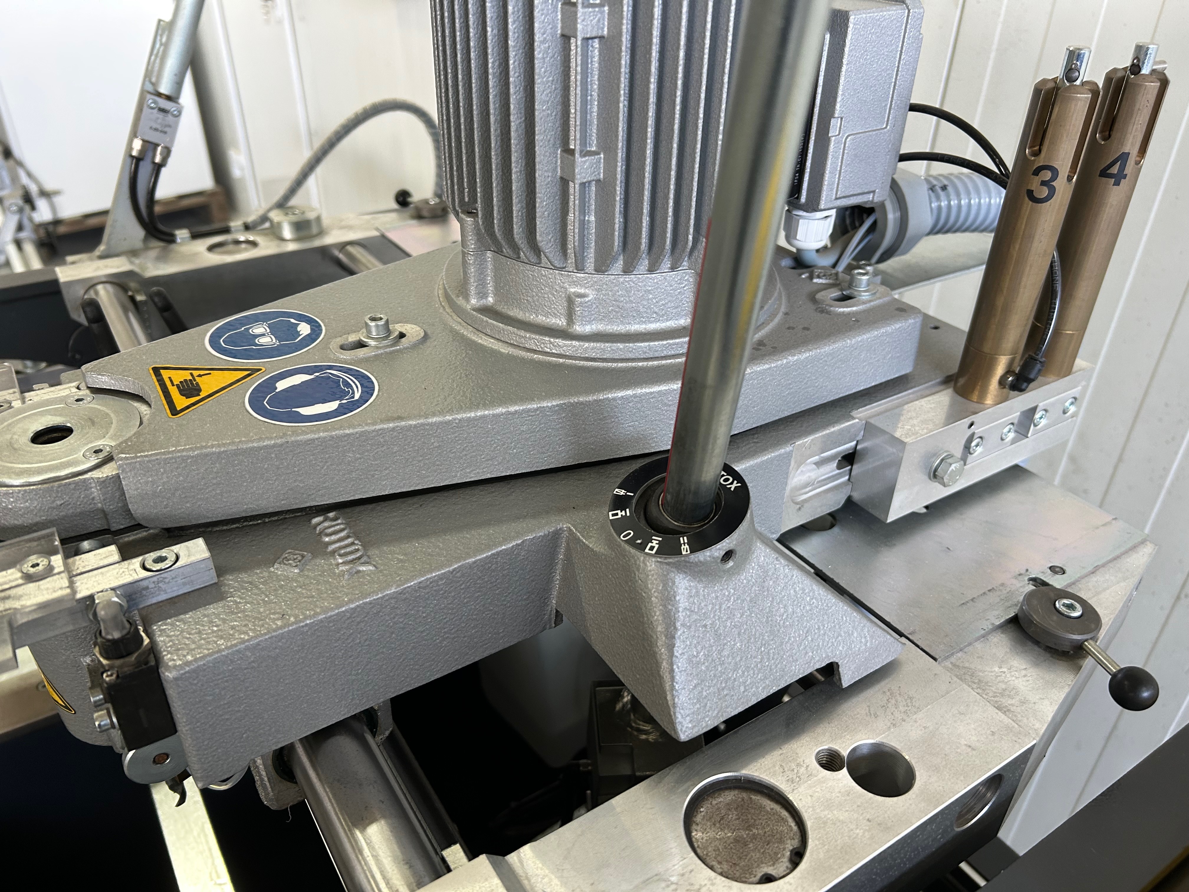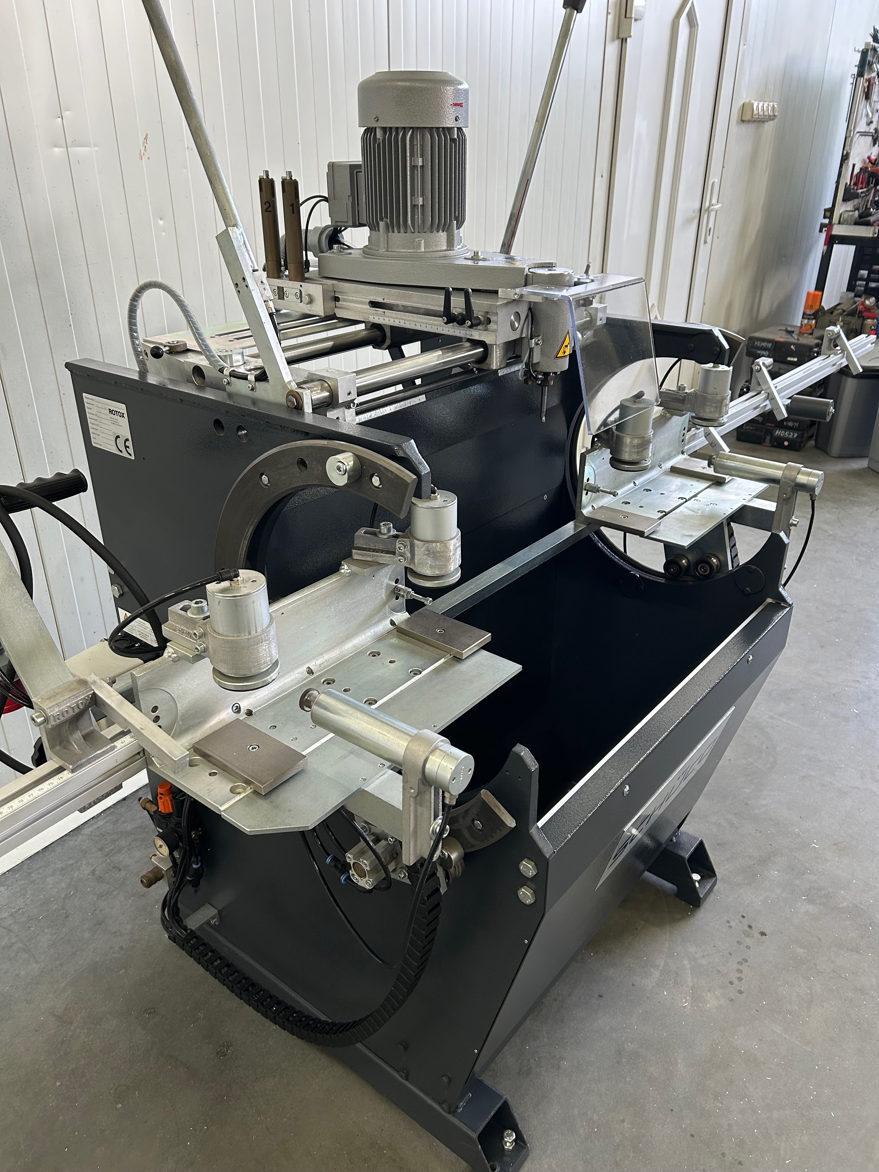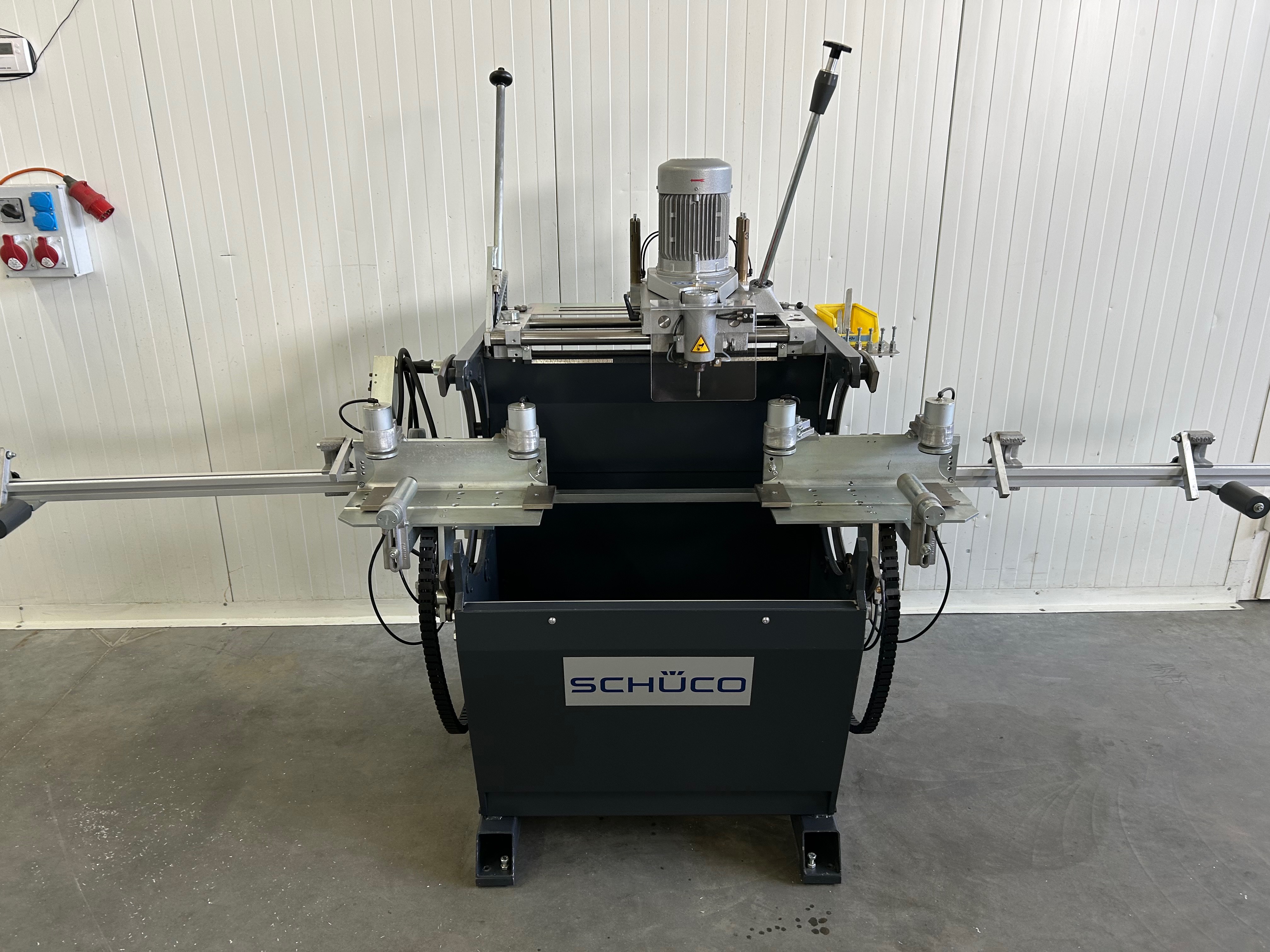 - Obrotowy stół roboczy między 0° a 180°, co umożliwia obróbkę z 3 stron w jednej mocowaniu 2 prędkości obrotowe, 6.000 lub 12.000 obrotów na minutę do wyboru, dzięki czemu można obrabiać zarówno profile stalowe, jak i aluminiowe 4 pneumatycznie sterowane wkładki kopiujące Pneumatyczne mocowanie materiału Urządzenie do natrysku minimalnej ilości Szerokość profilu: 30-120 mm Wysokość profilu: 50-100 mm Długość pręta: 490 - 3.000 mm Waga: ok. 350 kg